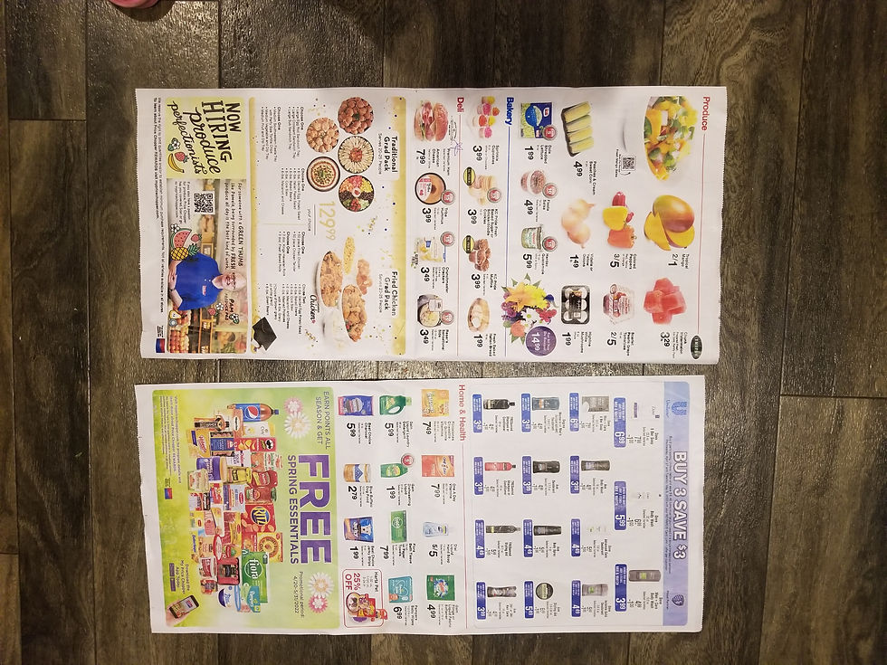 This week the Price Chopper ad was not too bad. There seemed to be more sales this week as compared to last week ad. This will be for 7 meals with leftovers, breakfast and snacks. This would be for about 4 people.
